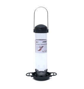 The design incorporates a bird friendly tray to enable birds to comfortably feed and an angled base to ensure the feed flows to the feeding ports.