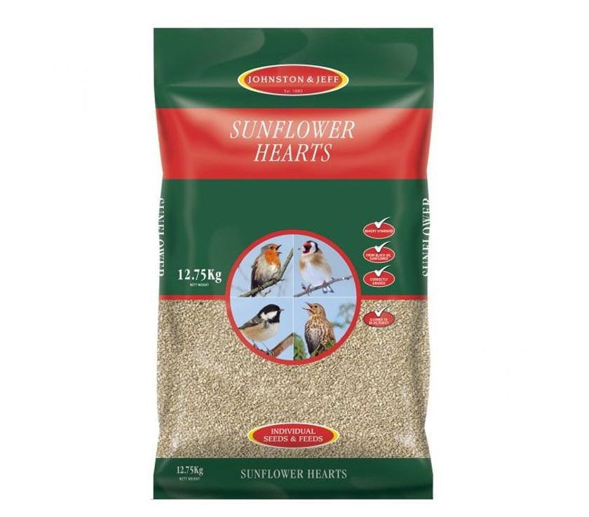 Johnston & Jeff Sunflower Hearts are nutritious, rich in oil and high in energy and protein for wild birds. Created from bakery grade kernels and taken from the type of sunflower that contains the most oil, they are husk free which will mean less waste and less mess under the feeder. Sunflower Hearts will attract a wide variety of birds to your garden and are best fed from a seed feeder, a bird table or a ground feeding tray.